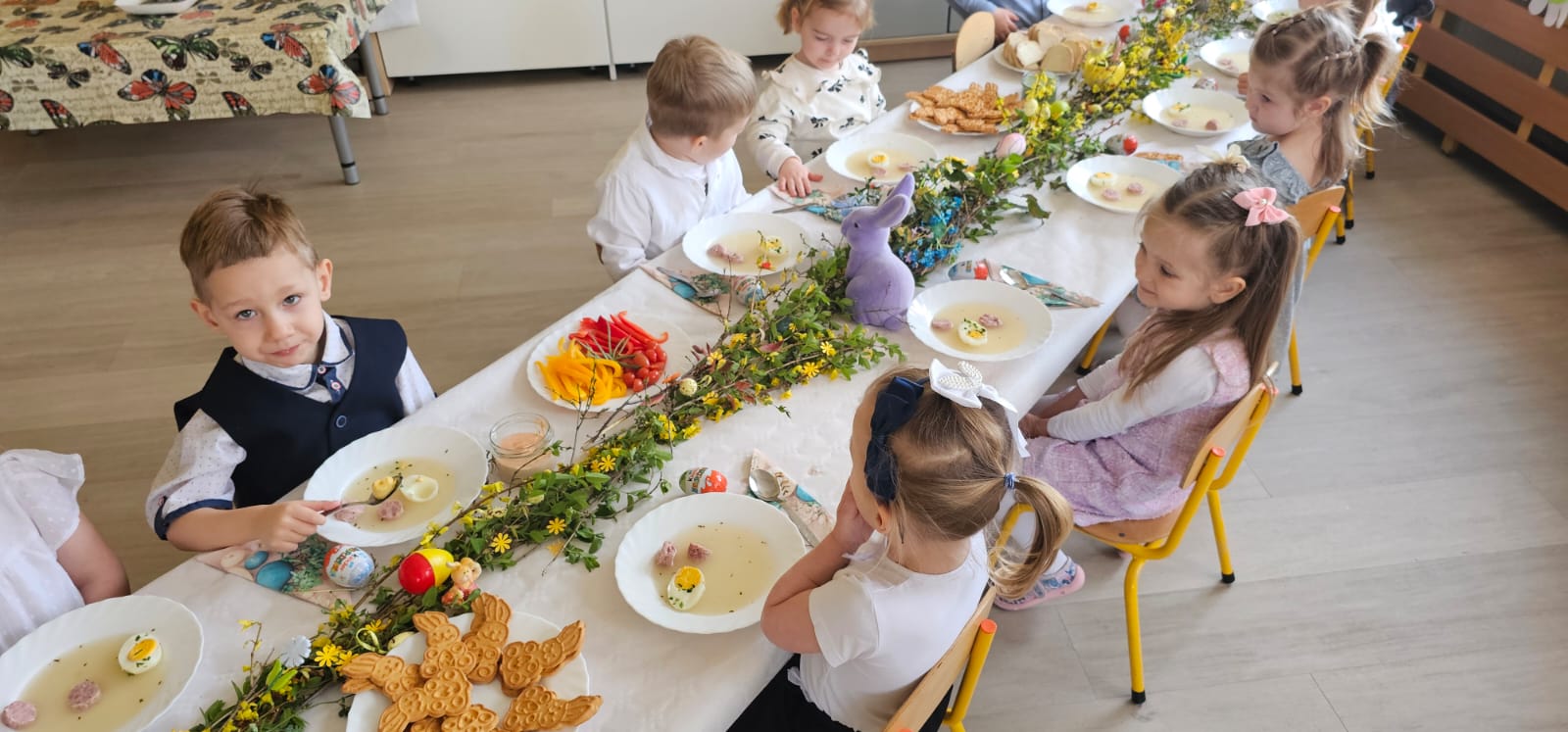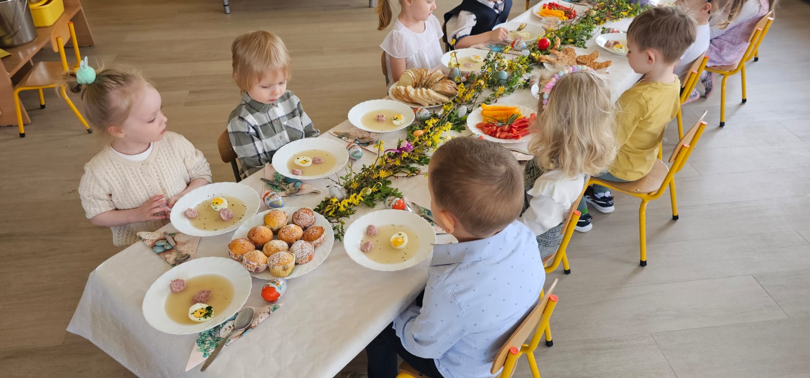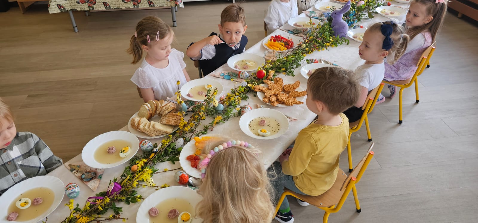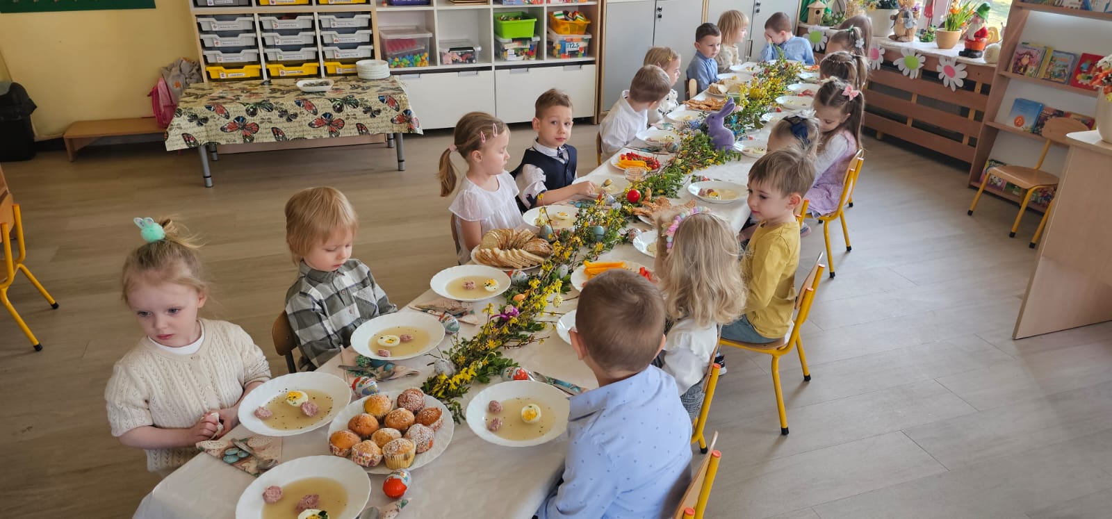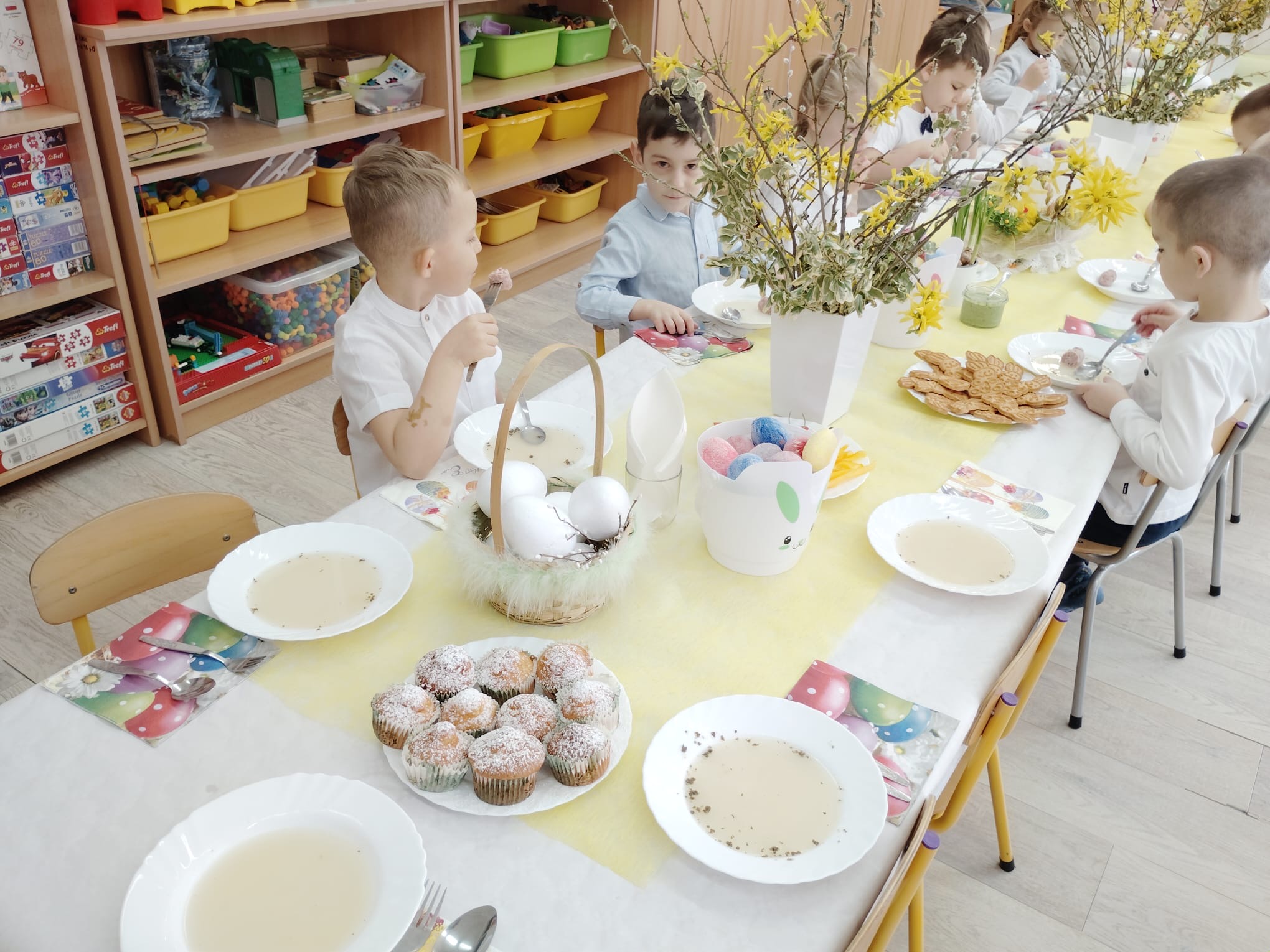 W naszym przedszkolu piękną tradycją stał się wspólny posiłek wielkanocny. Każdego roku dzieci wraz z nauczycielami przygotowują się do tego wyjątkowego dnia, poznając zwyczaje i symbole związane z Wielkanocą. Wspólne śniadanie lub obiad jest okazją do integracji, rozmów oraz radosnego świętowania w miłej, rodzinnej atmosferze. Dzięki temu dzieci uczą się szacunku do tradycji oraz spędzania czasu razem z innymi.