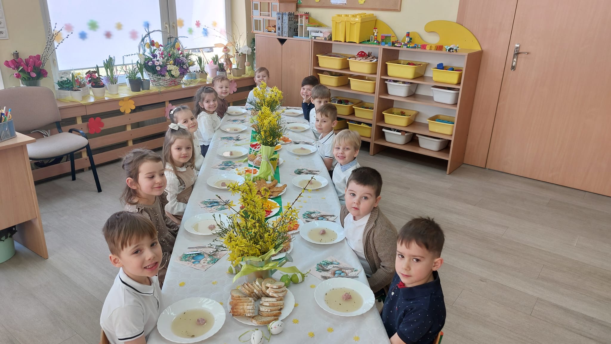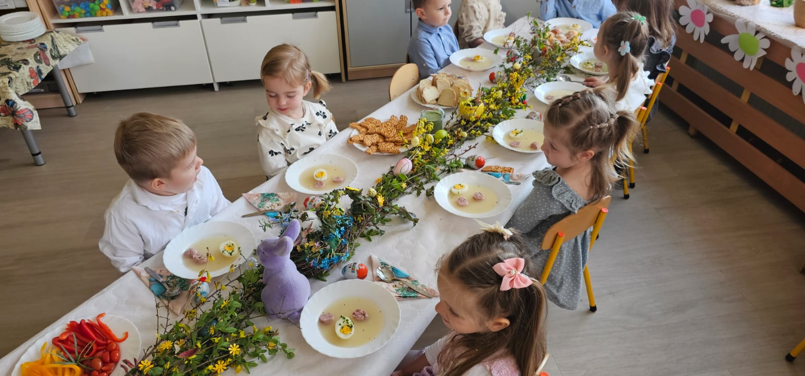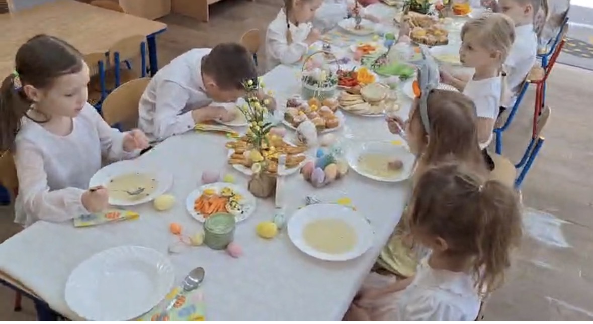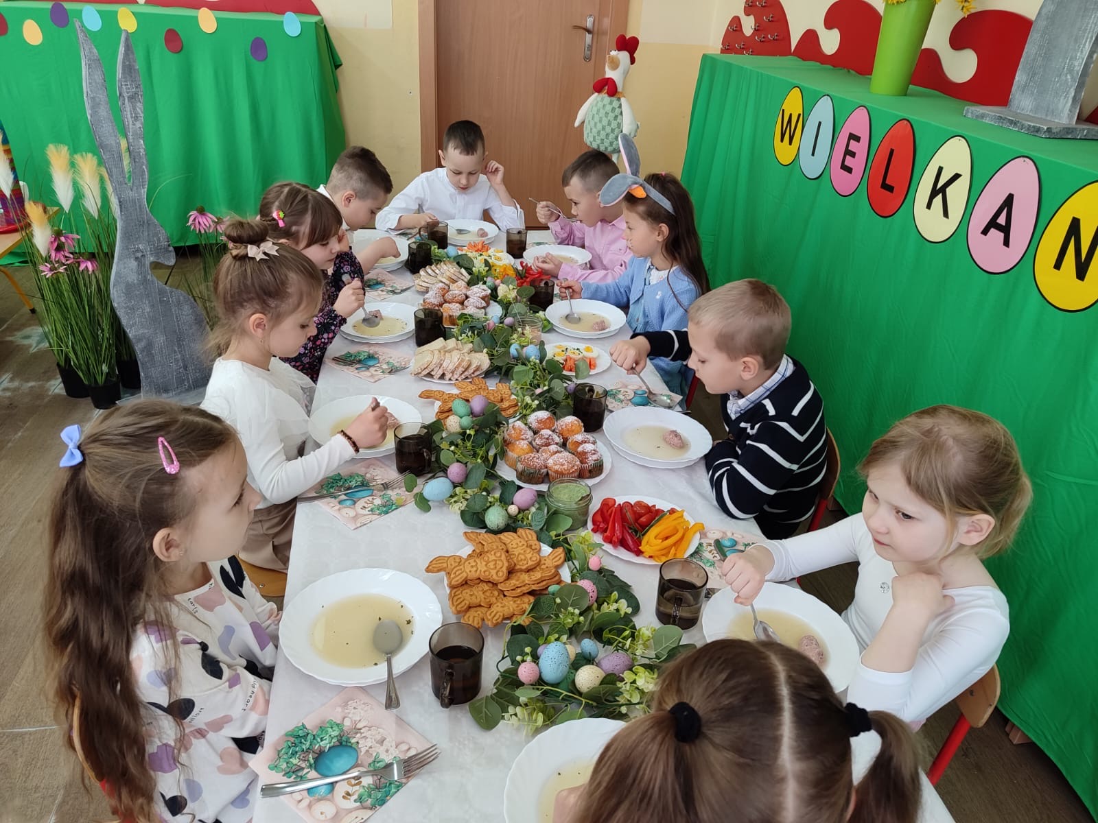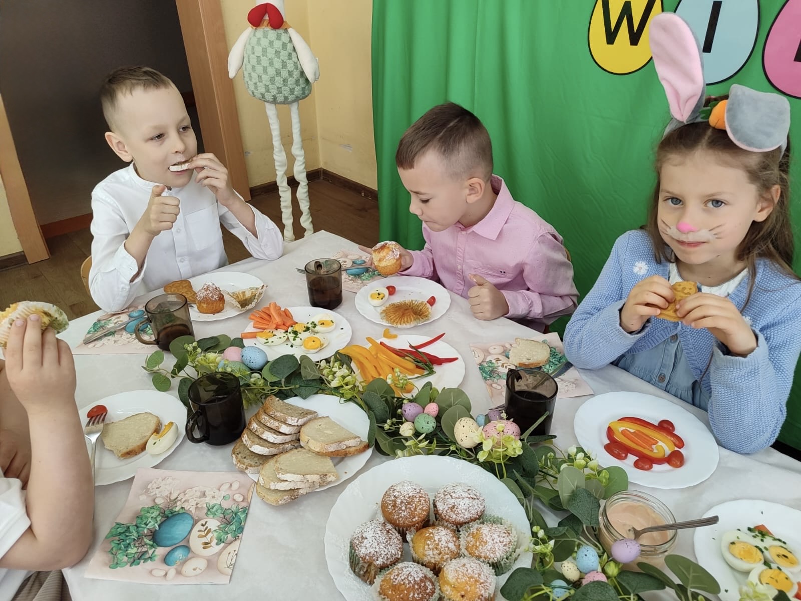W naszym przedszkolu piękną tradycją stał się wspólny posiłek wielkanocny. Każdego roku dzieci wraz z nauczycielami przygotowują się do tego wyjątkowego dnia, poznając zwyczaje i symbole związane z Wielkanocą. Wspólne śniadanie lub obiad jest okazją do integracji, rozmów oraz radosnego świętowania w miłej, rodzinnej atmosferze. Dzięki temu dzieci uczą się szacunku do tradycji oraz spędzania czasu razem z innymi.