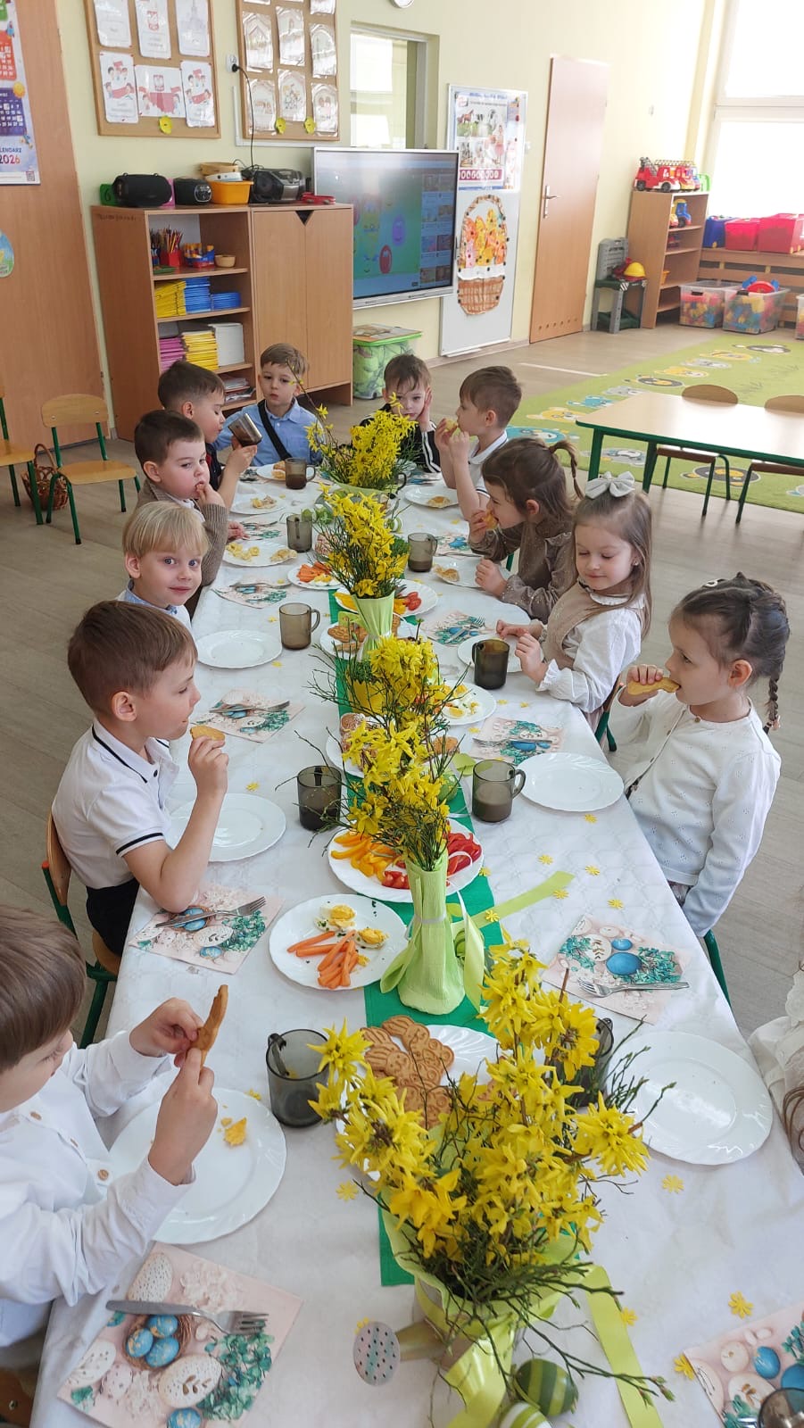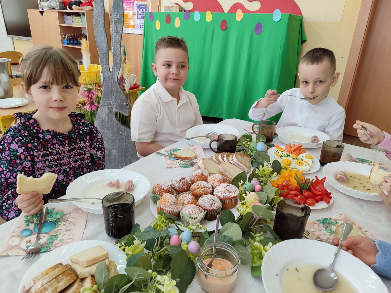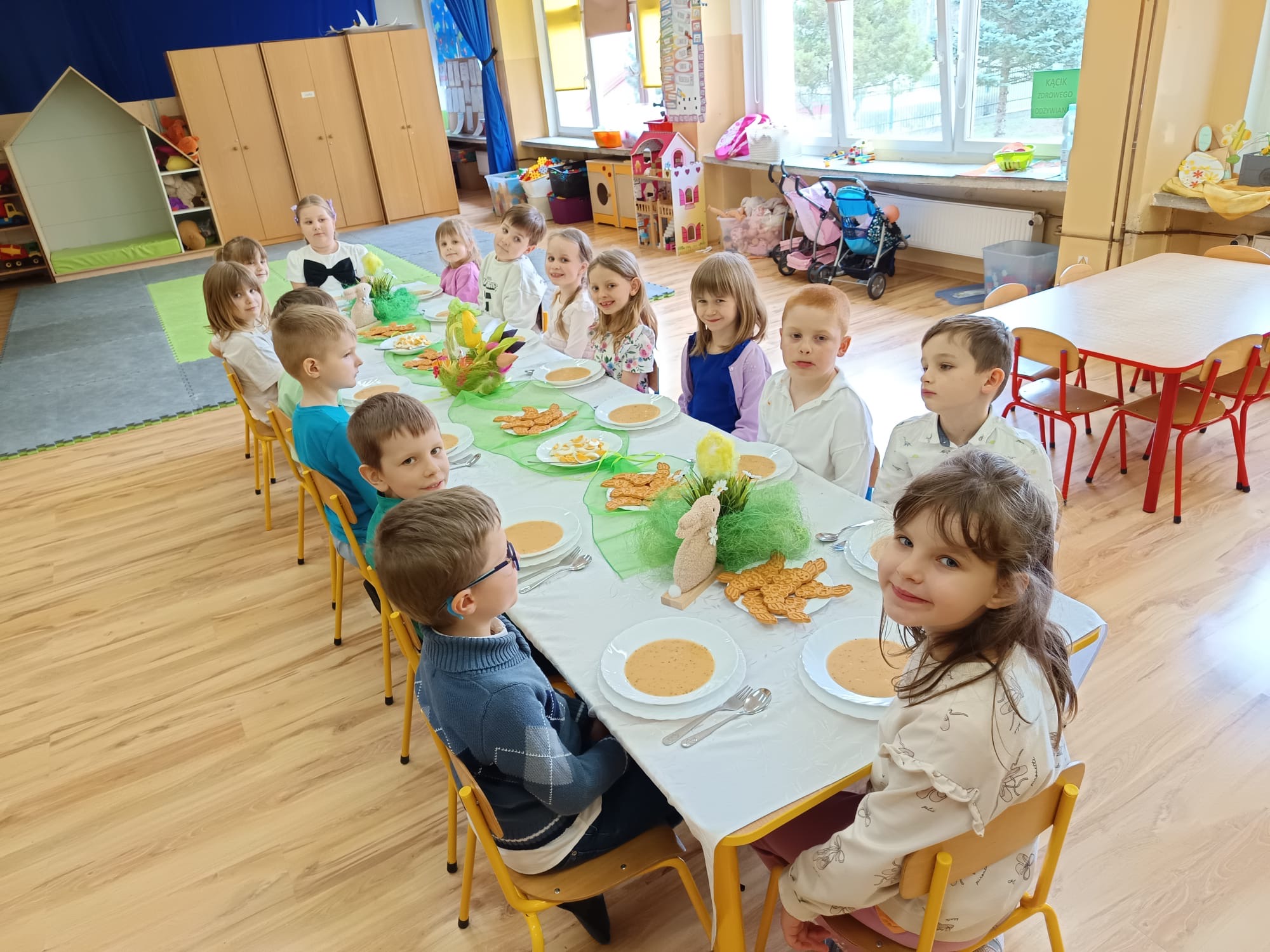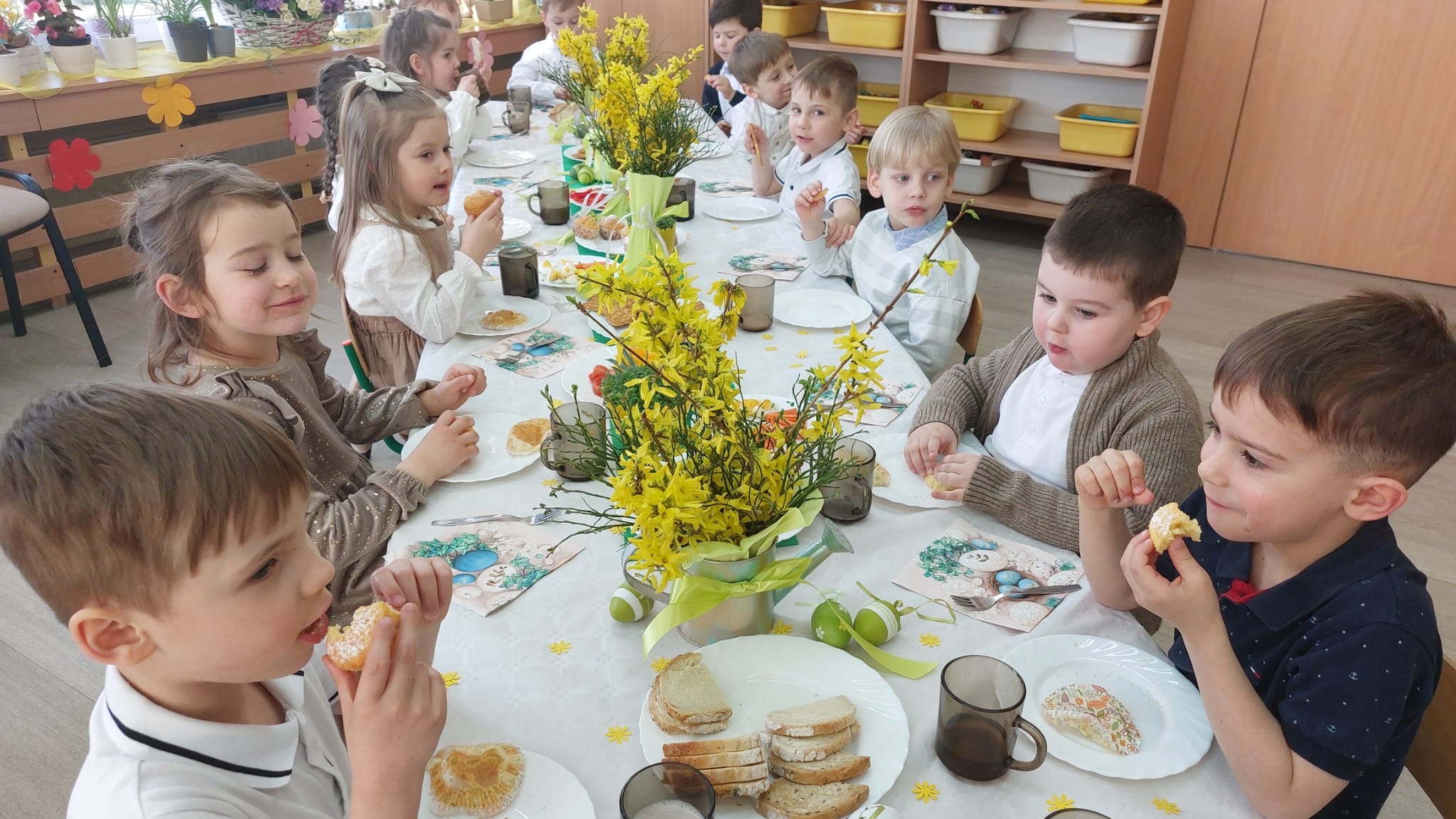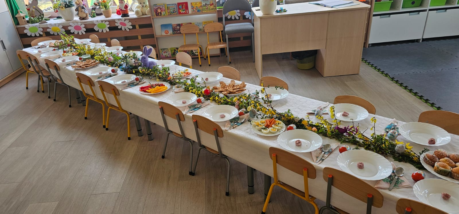 W naszym przedszkolu piękną tradycją stał się wspólny posiłek wielkanocny. Każdego roku dzieci wraz z nauczycielami przygotowują się do tego wyjątkowego dnia, poznając zwyczaje i symbole związane z Wielkanocą. Wspólne śniadanie lub obiad jest okazją do integracji, rozmów oraz radosnego świętowania w miłej, rodzinnej atmosferze. Dzięki temu dzieci uczą się szacunku do tradycji oraz spędzania czasu razem z innymi.