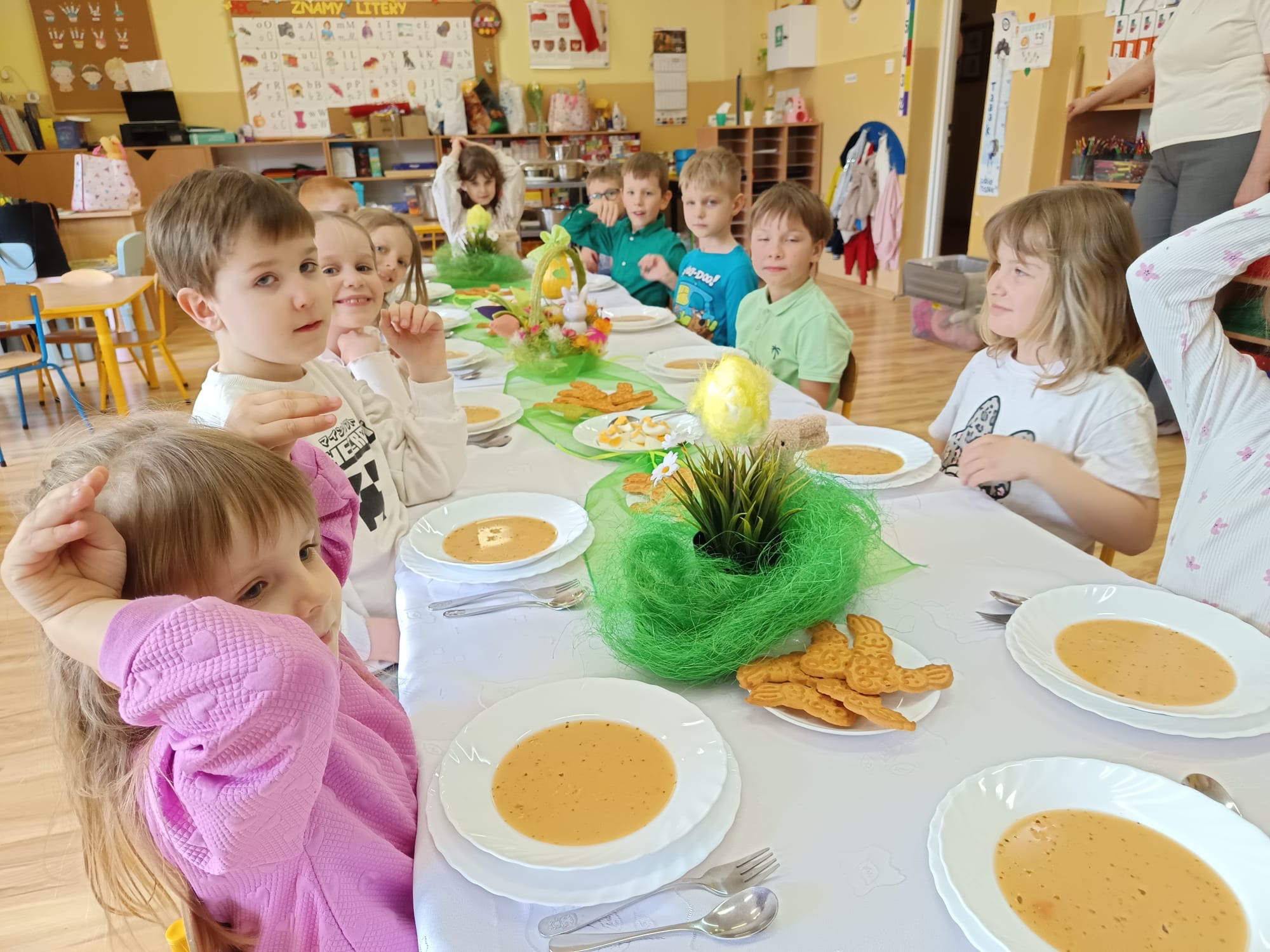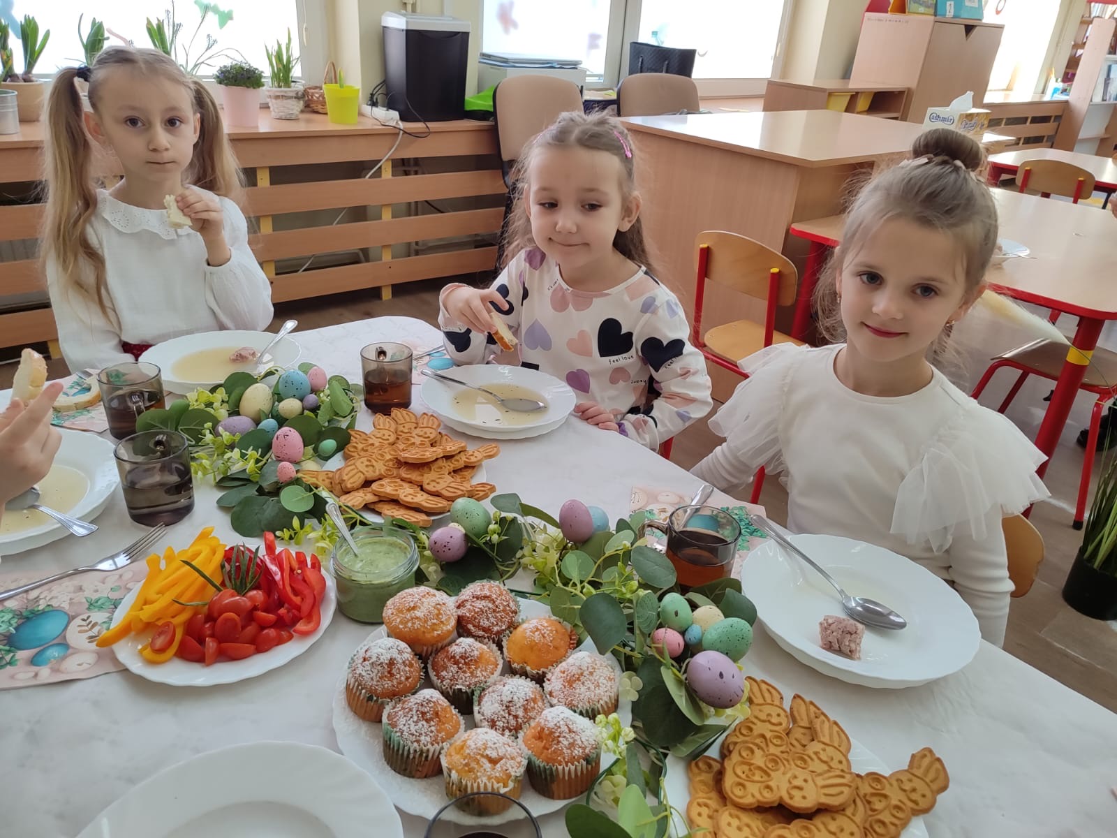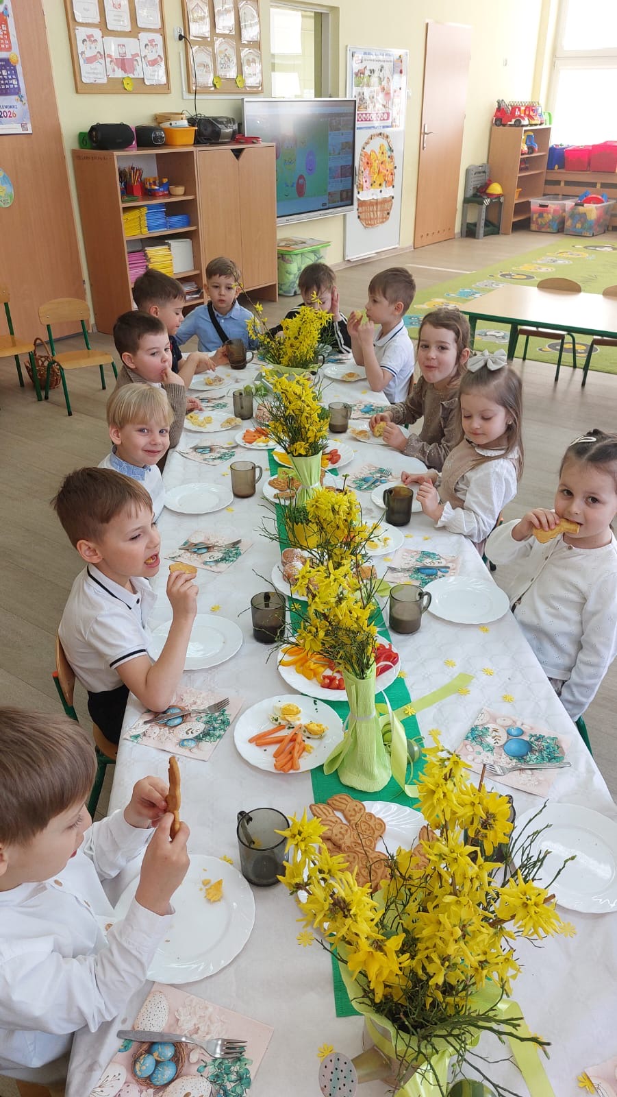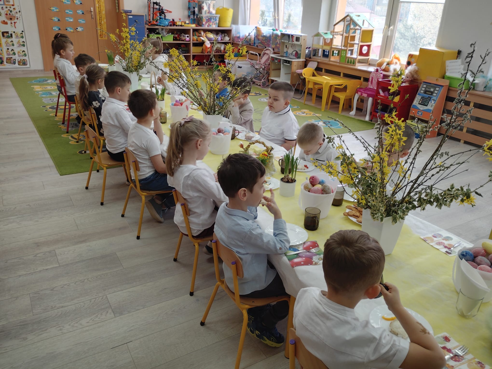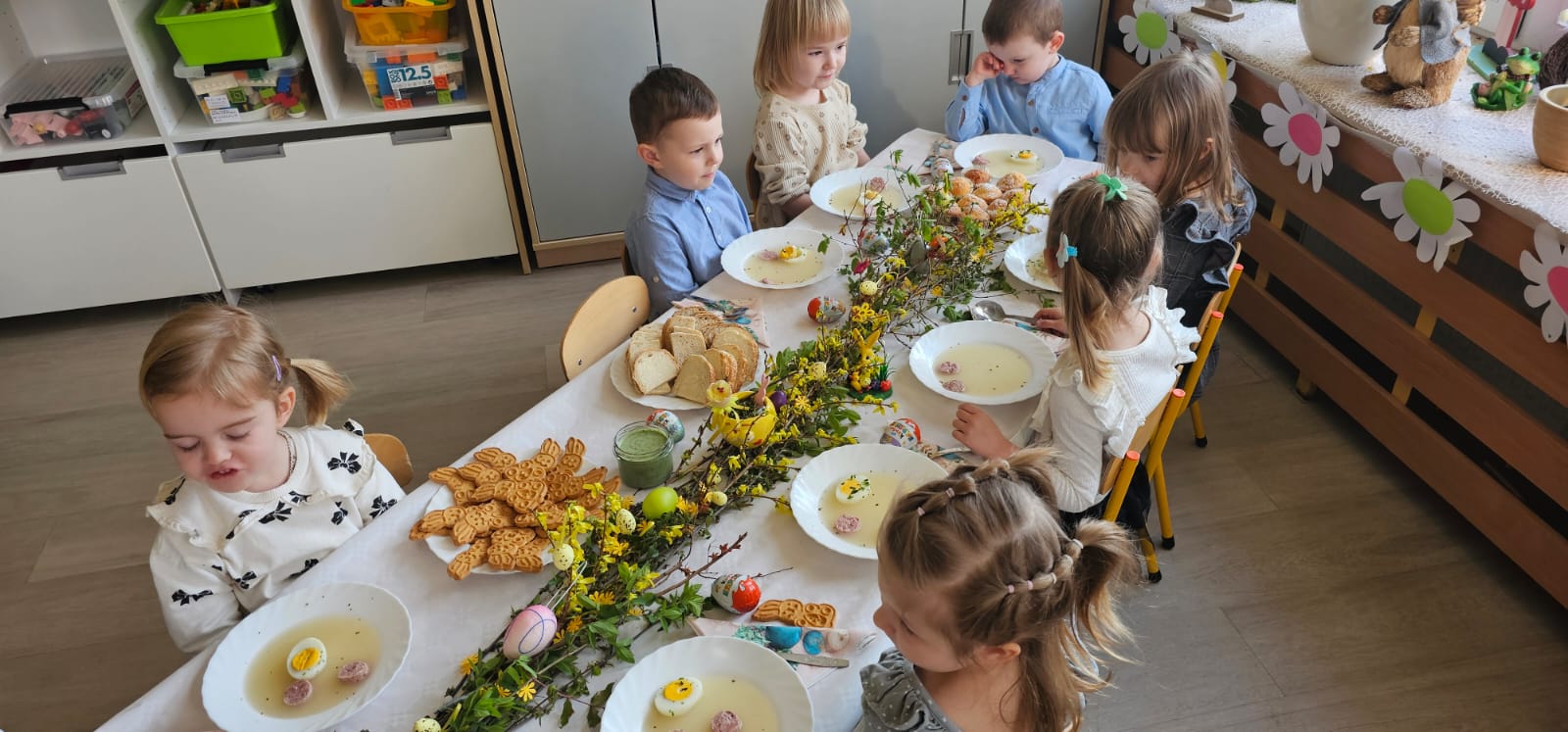 W naszym przedszkolu piękną tradycją stał się wspólny posiłek wielkanocny. Każdego roku dzieci wraz z nauczycielami przygotowują się do tego wyjątkowego dnia, poznając zwyczaje i symbole związane z Wielkanocą. Wspólne śniadanie lub obiad jest okazją do integracji, rozmów oraz radosnego świętowania w miłej, rodzinnej atmosferze. Dzięki temu dzieci uczą się szacunku do tradycji oraz spędzania czasu razem z innymi.