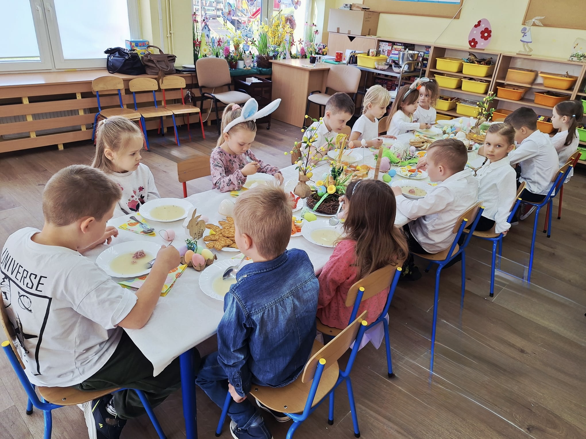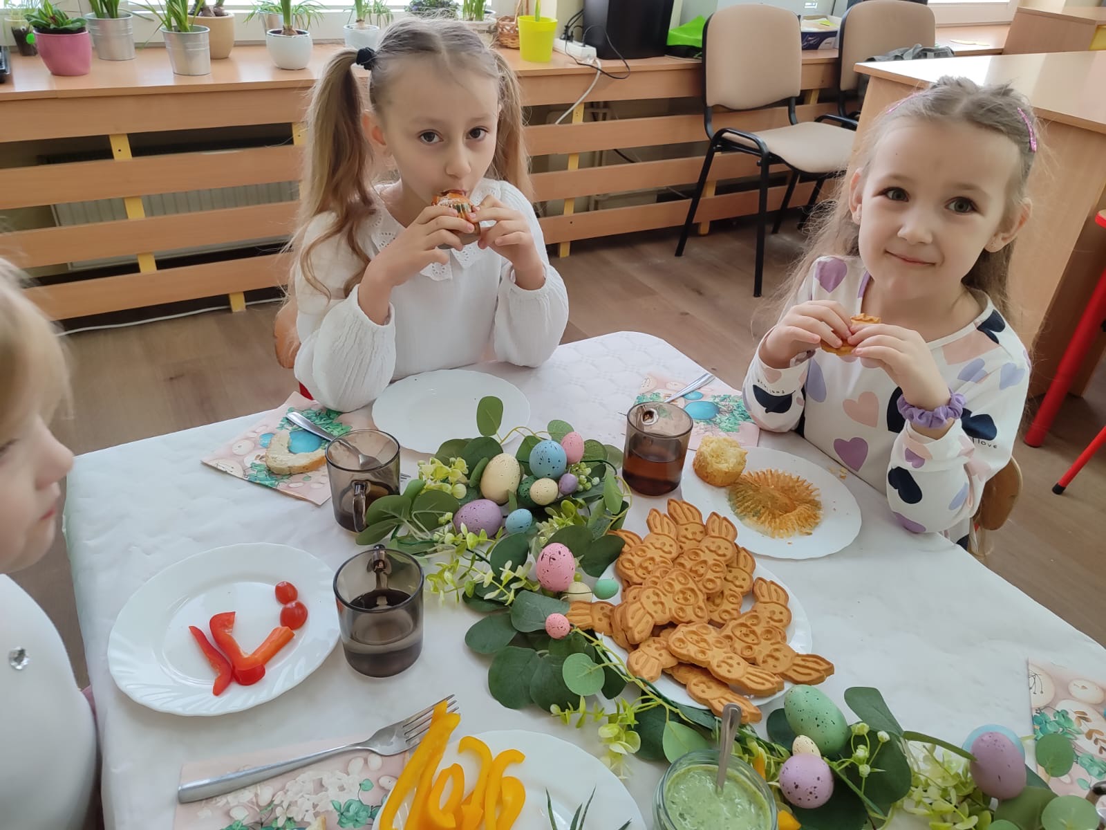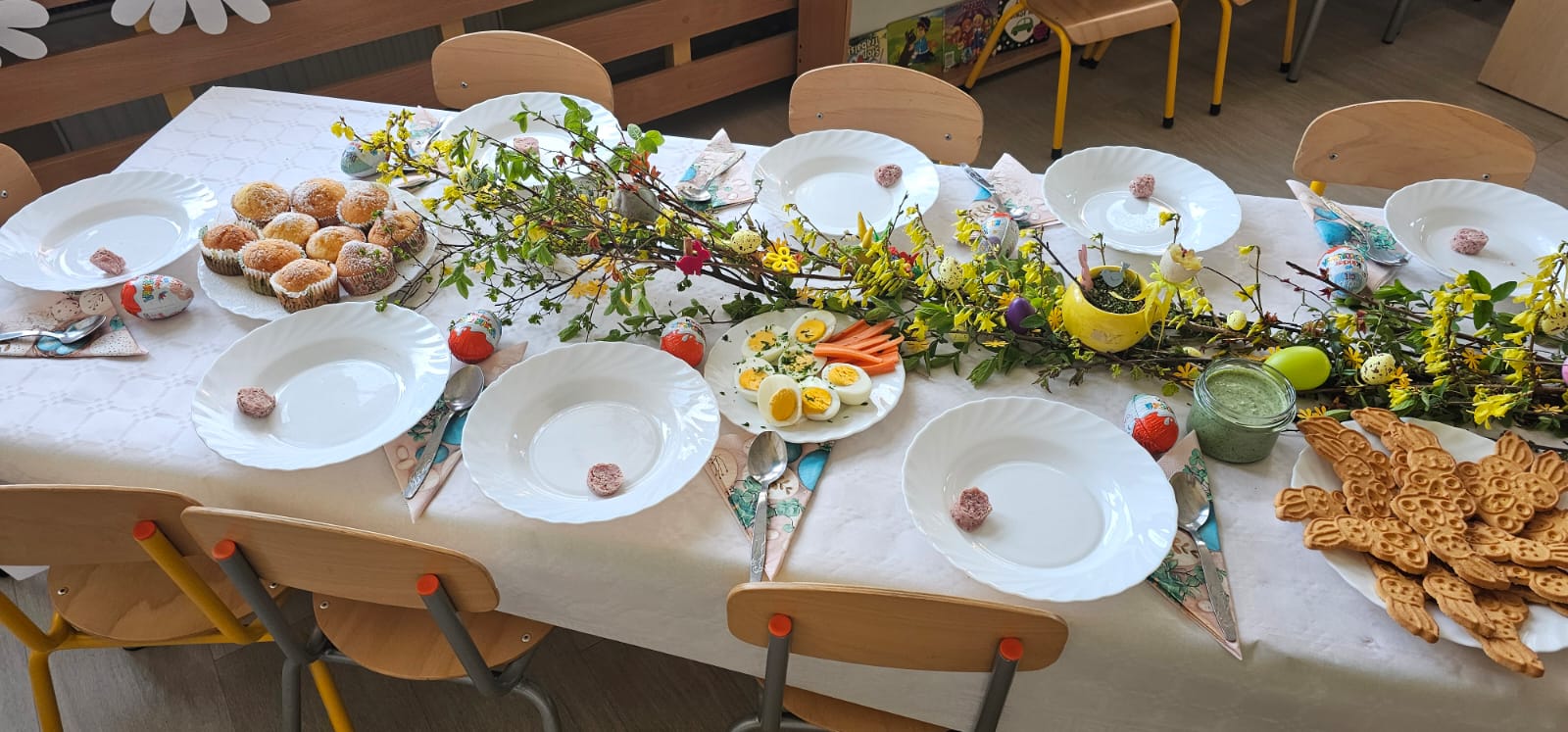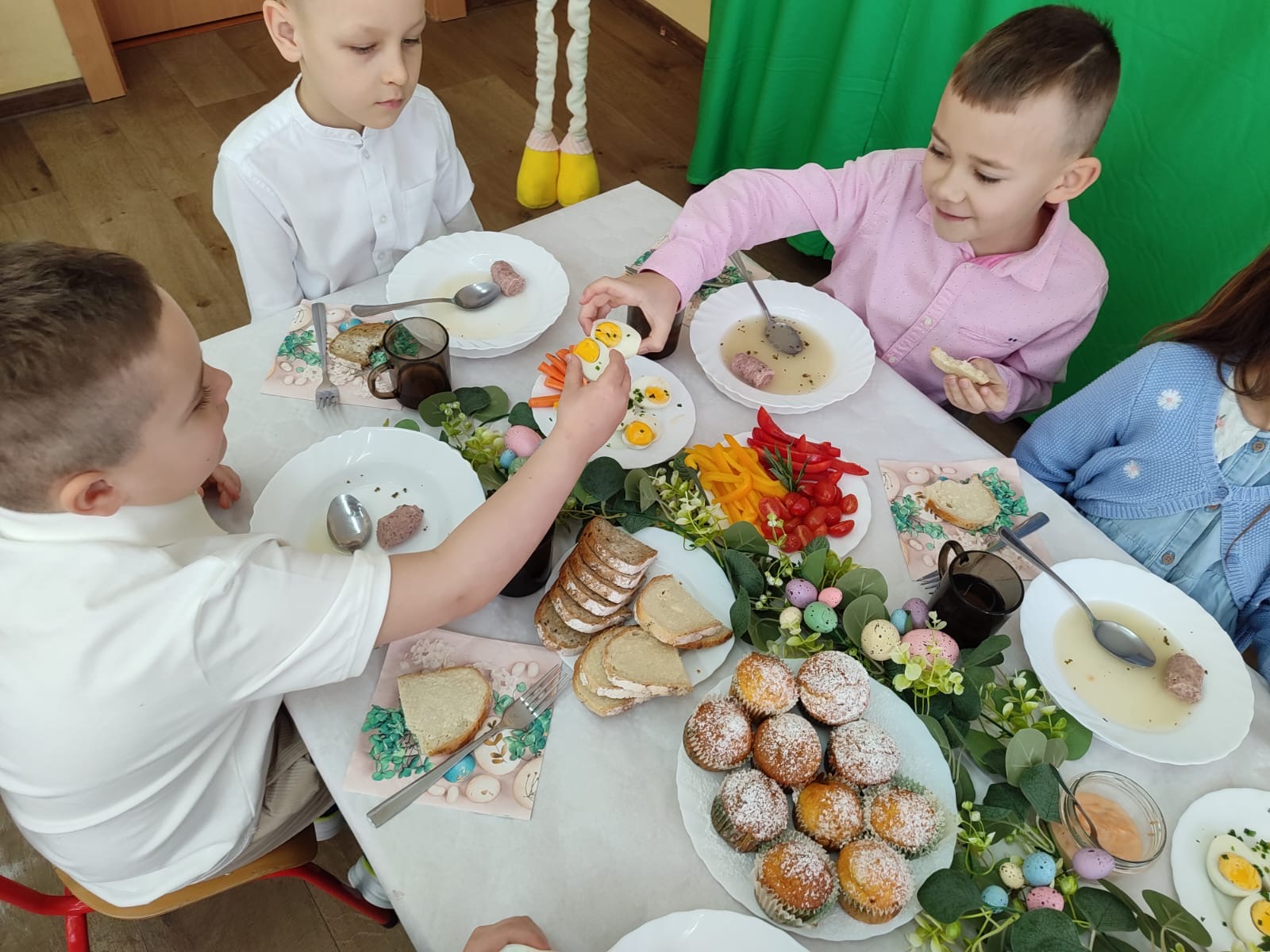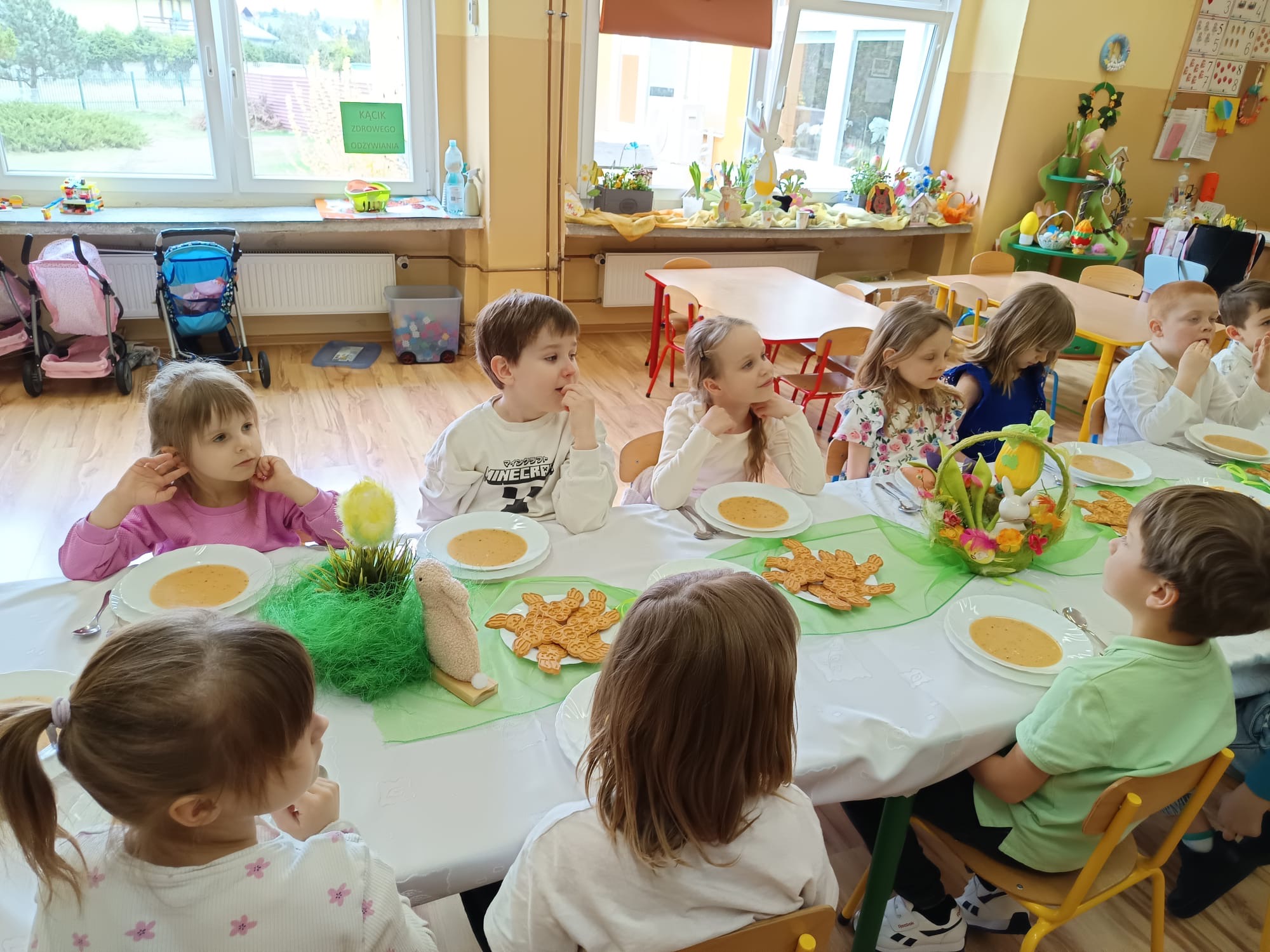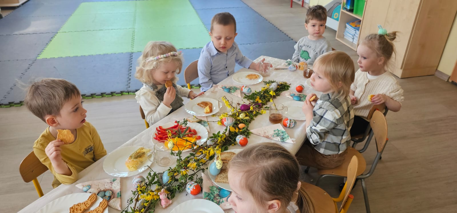 W naszym przedszkolu piękną tradycją stał się wspólny posiłek wielkanocny. Każdego roku dzieci wraz z nauczycielami przygotowują się do tego wyjątkowego dnia, poznając zwyczaje i symbole związane z Wielkanocą. Wspólne śniadanie lub obiad jest okazją do integracji, rozmów oraz radosnego świętowania w miłej, rodzinnej atmosferze. Dzięki temu dzieci uczą się szacunku do tradycji oraz spędzania czasu razem z innymi.