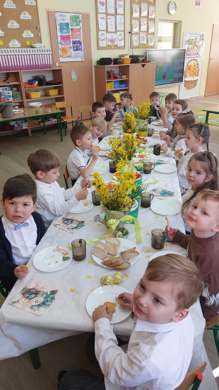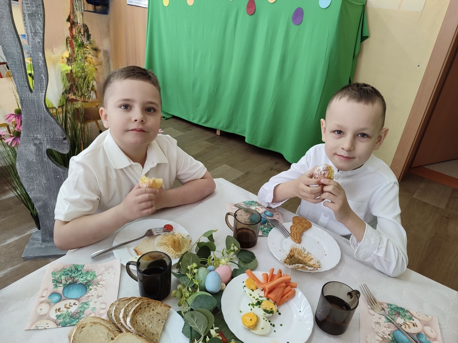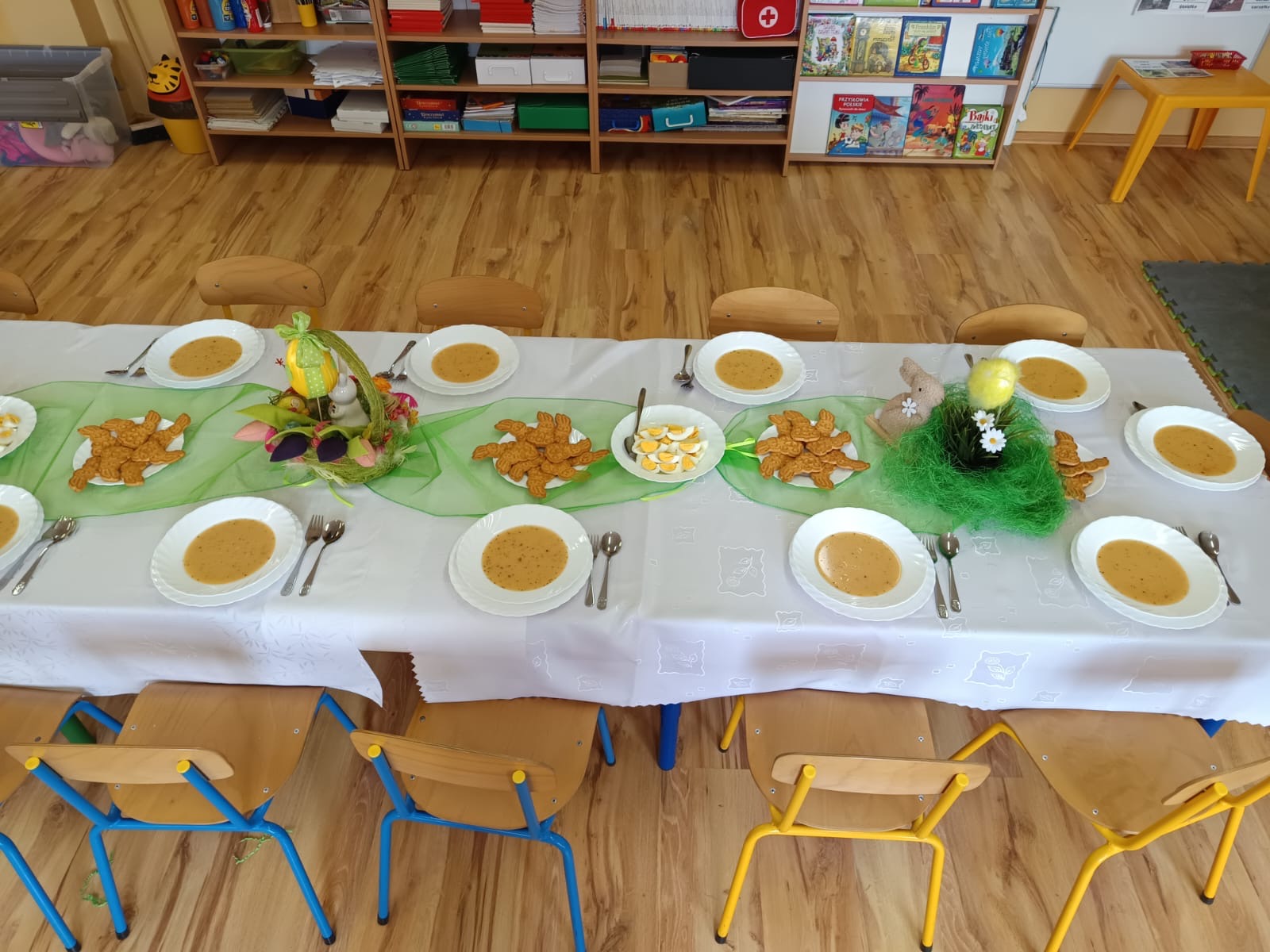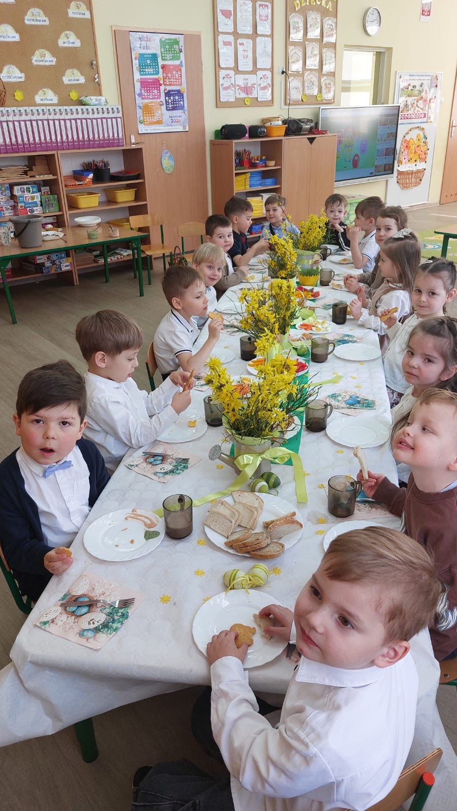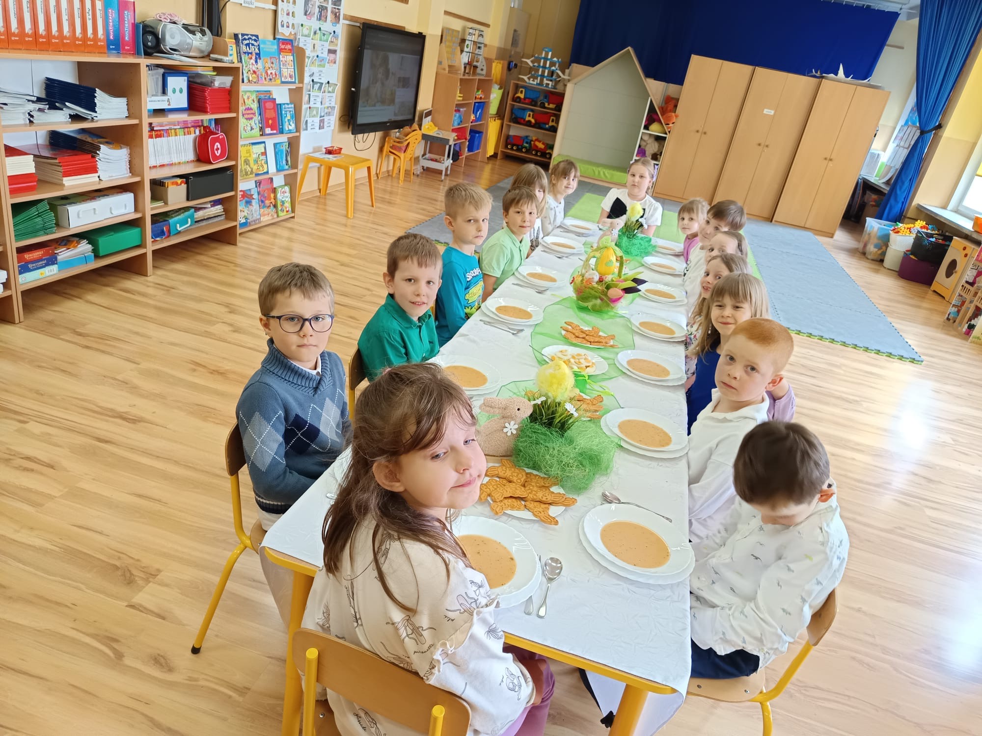 W naszym przedszkolu piękną tradycją stał się wspólny posiłek wielkanocny. Każdego roku dzieci wraz z nauczycielami przygotowują się do tego wyjątkowego dnia, poznając zwyczaje i symbole związane z Wielkanocą. Wspólne śniadanie lub obiad jest okazją do integracji, rozmów oraz radosnego świętowania w miłej, rodzinnej atmosferze. Dzięki temu dzieci uczą się szacunku do tradycji oraz spędzania czasu razem z innymi.