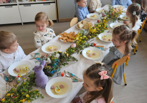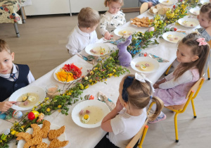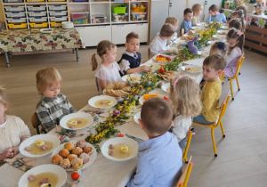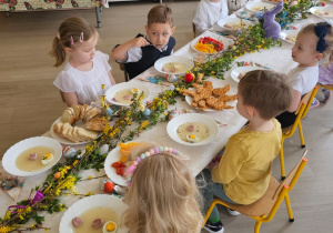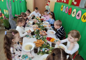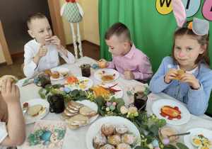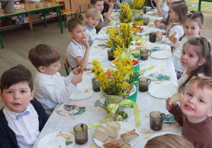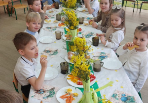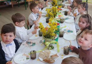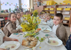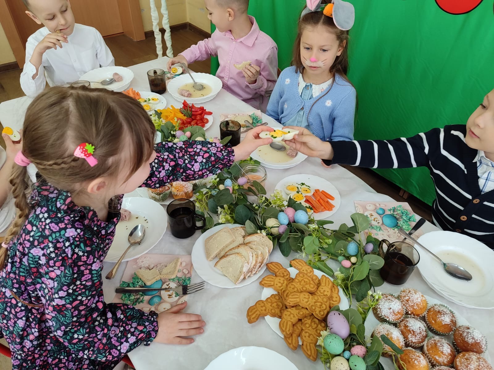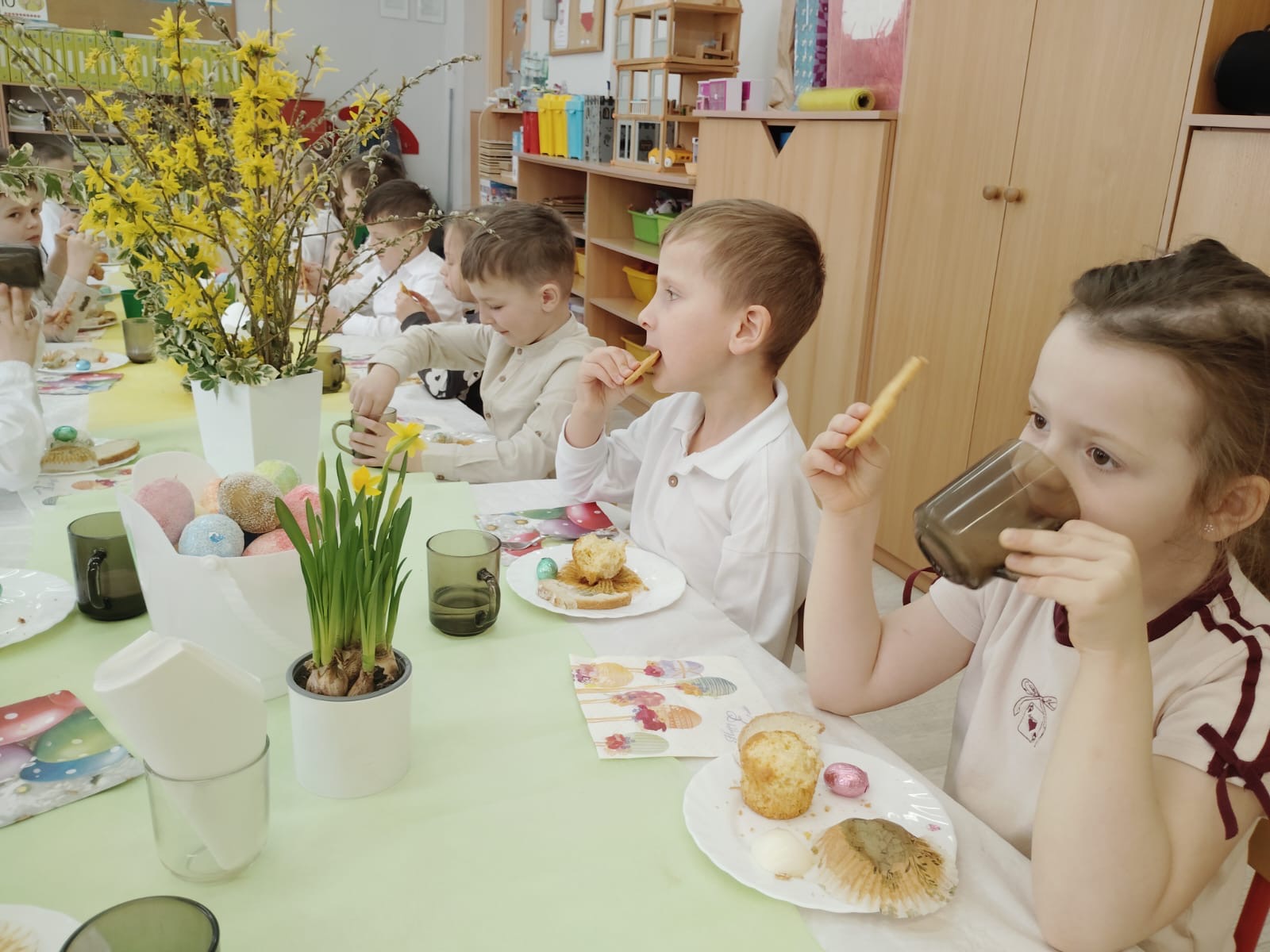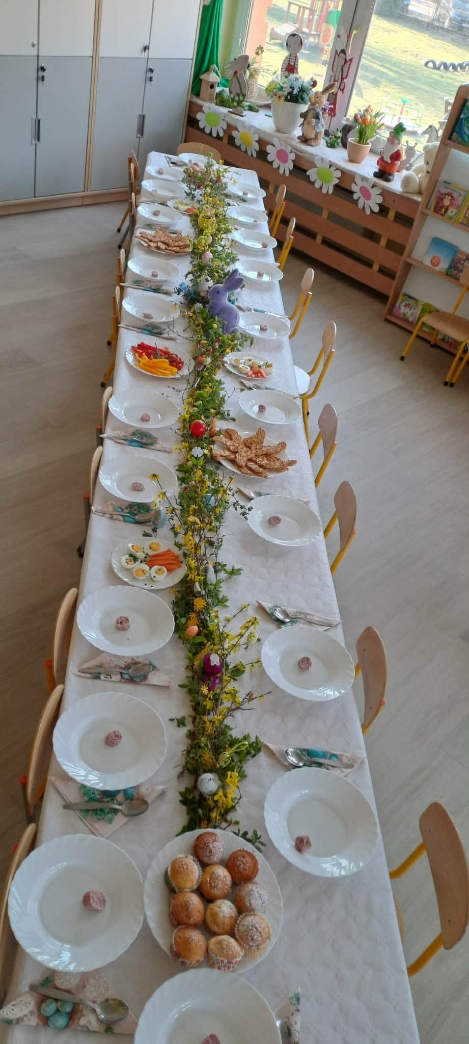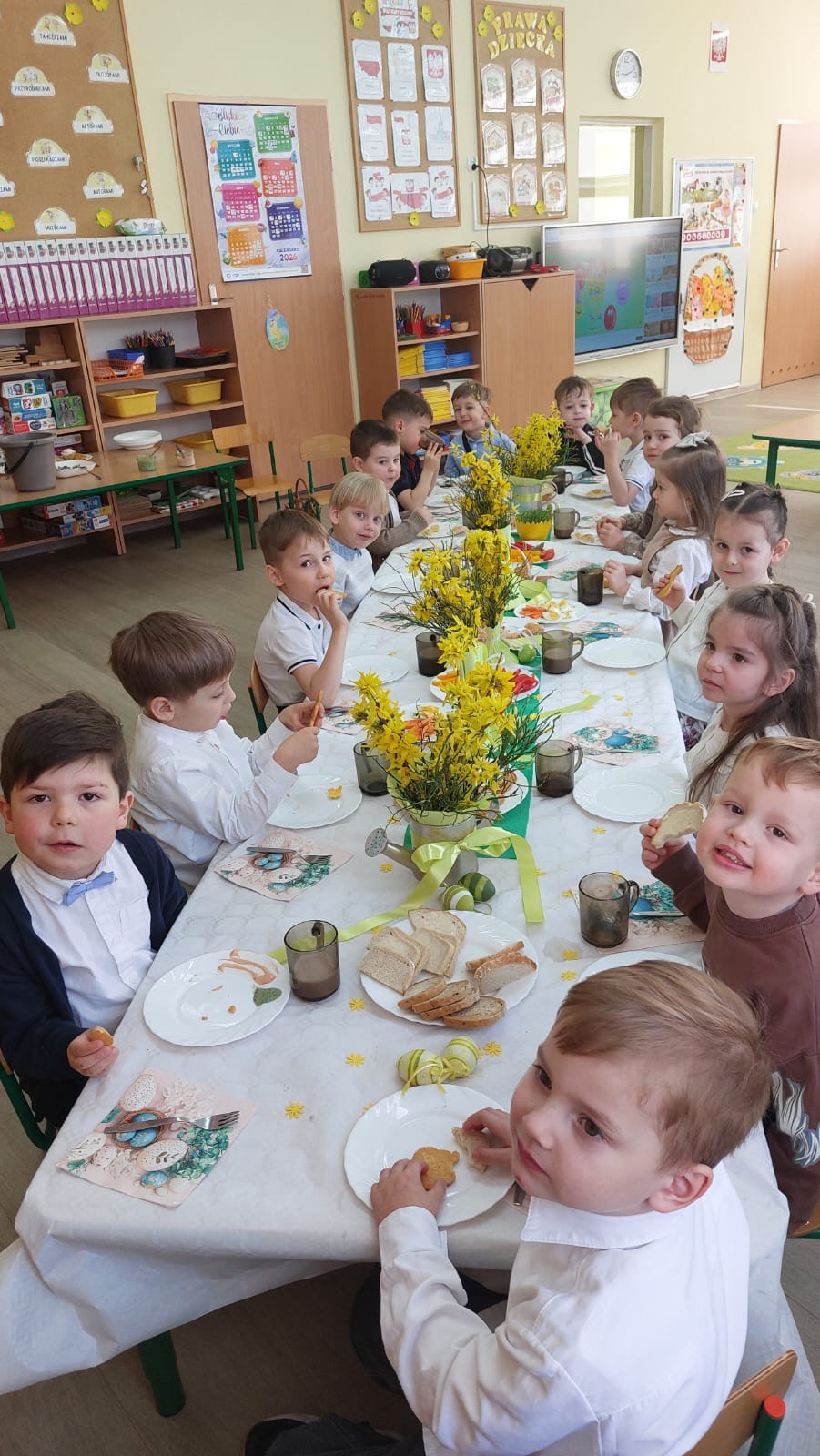 W naszym przedszkolu piękną tradycją stał się wspólny posiłek wielkanocny. Każdego roku dzieci wraz z nauczycielami przygotowują się do tego wyjątkowego dnia, poznając zwyczaje i symbole związane z Wielkanocą. Wspólne śniadanie lub obiad jest okazją do integracji, rozmów oraz radosnego świętowania w miłej, rodzinnej atmosferze. Dzięki temu dzieci uczą się szacunku do tradycji oraz spędzania czasu razem z innymi.