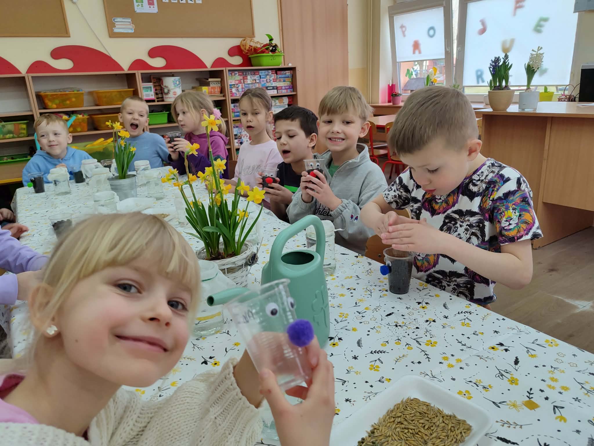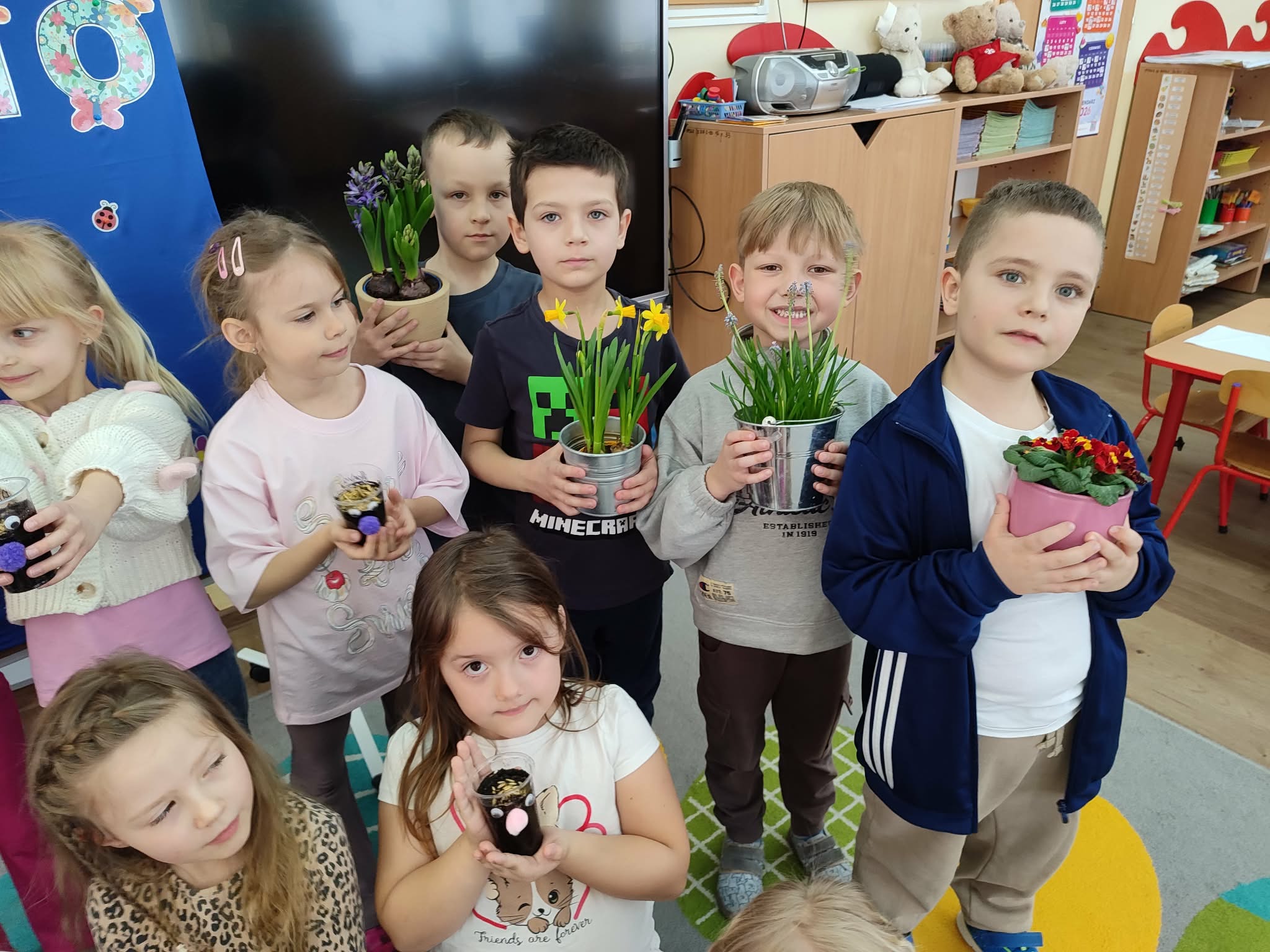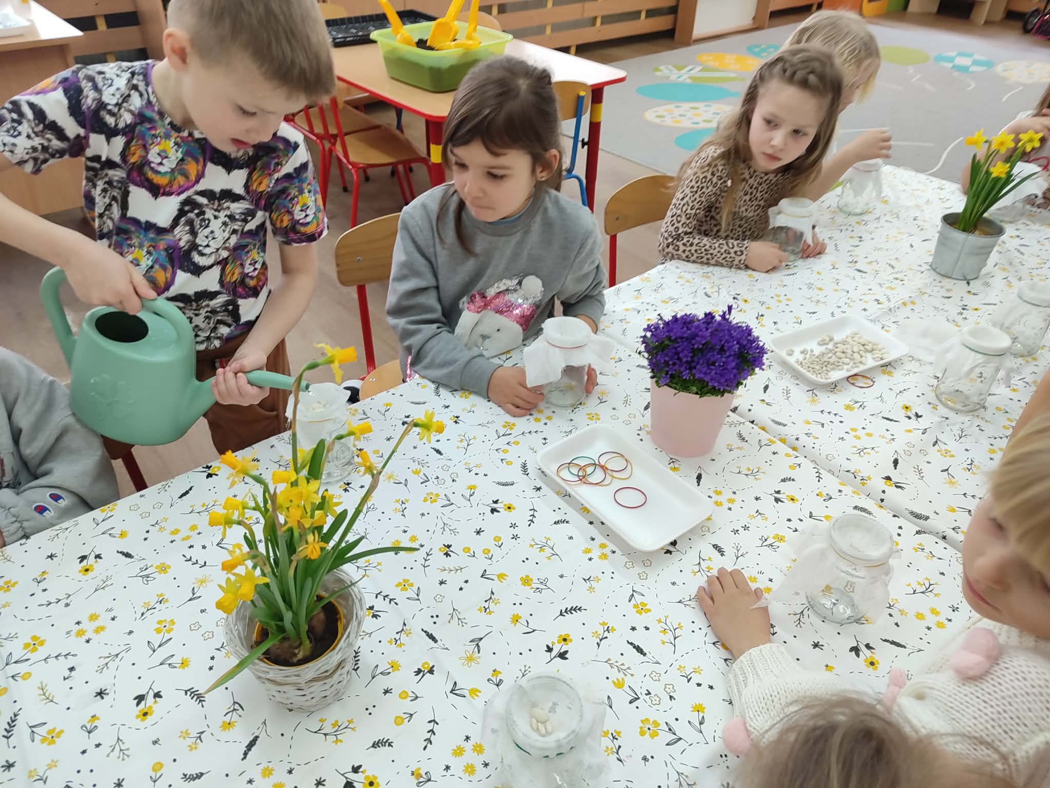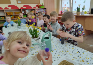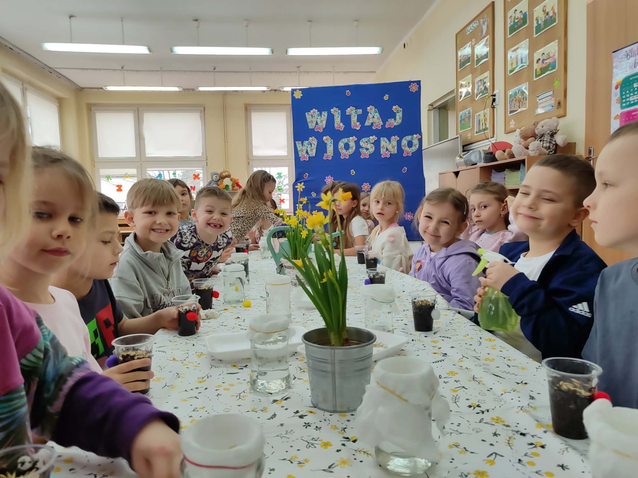 Celebrujemy pierwszy dzień wiosny w wyjątkowy, radosny sposób. Tego dnia zamieniamy się w małych ogrodników i z wielkim zaangażowaniem rozpoczynamy wiosenne prace. Wspólnie zakładamy w naszej sali wiosenne kąciki. Nasze parapety powoli zamieniają się w zielone, piękne zakątki, które każdego dnia będą przypominać nam o nadejściu tej pięknej pory roku. Z dumą będziemy oglądać swoje wiosenne uprawy i obiecujemy, że będziemy o nie dbać!