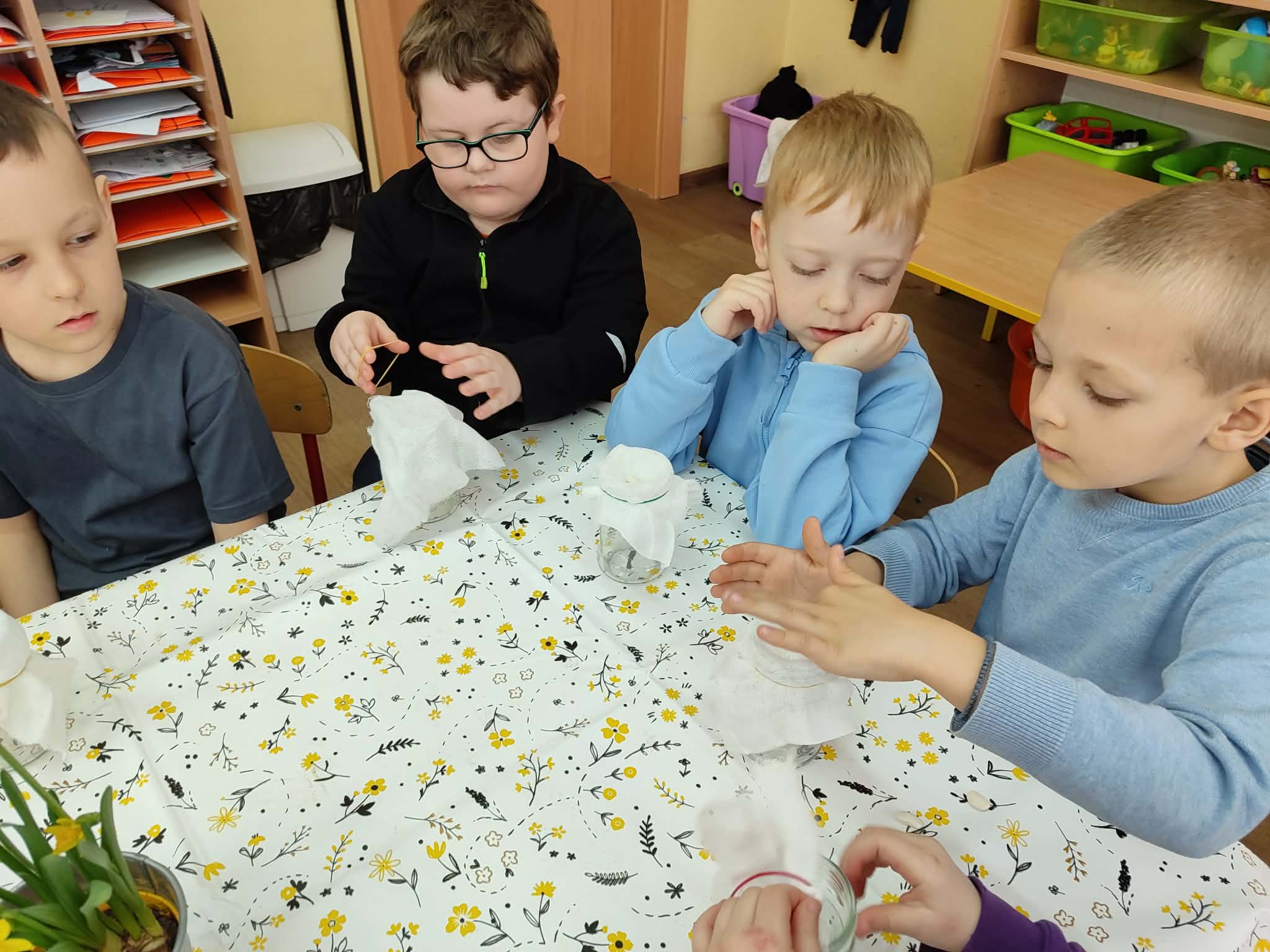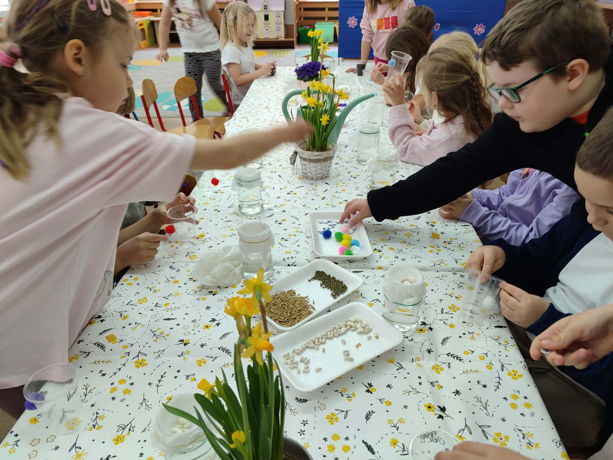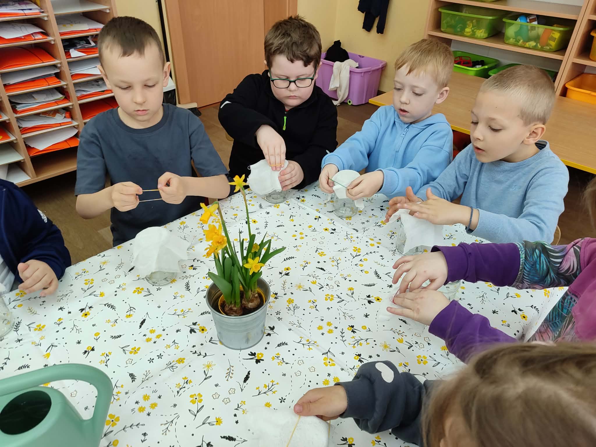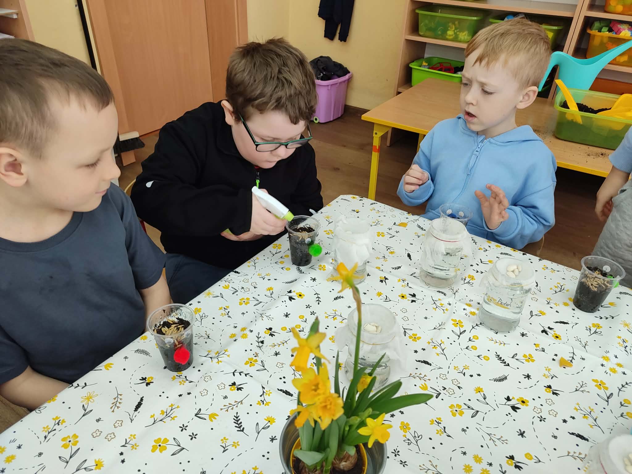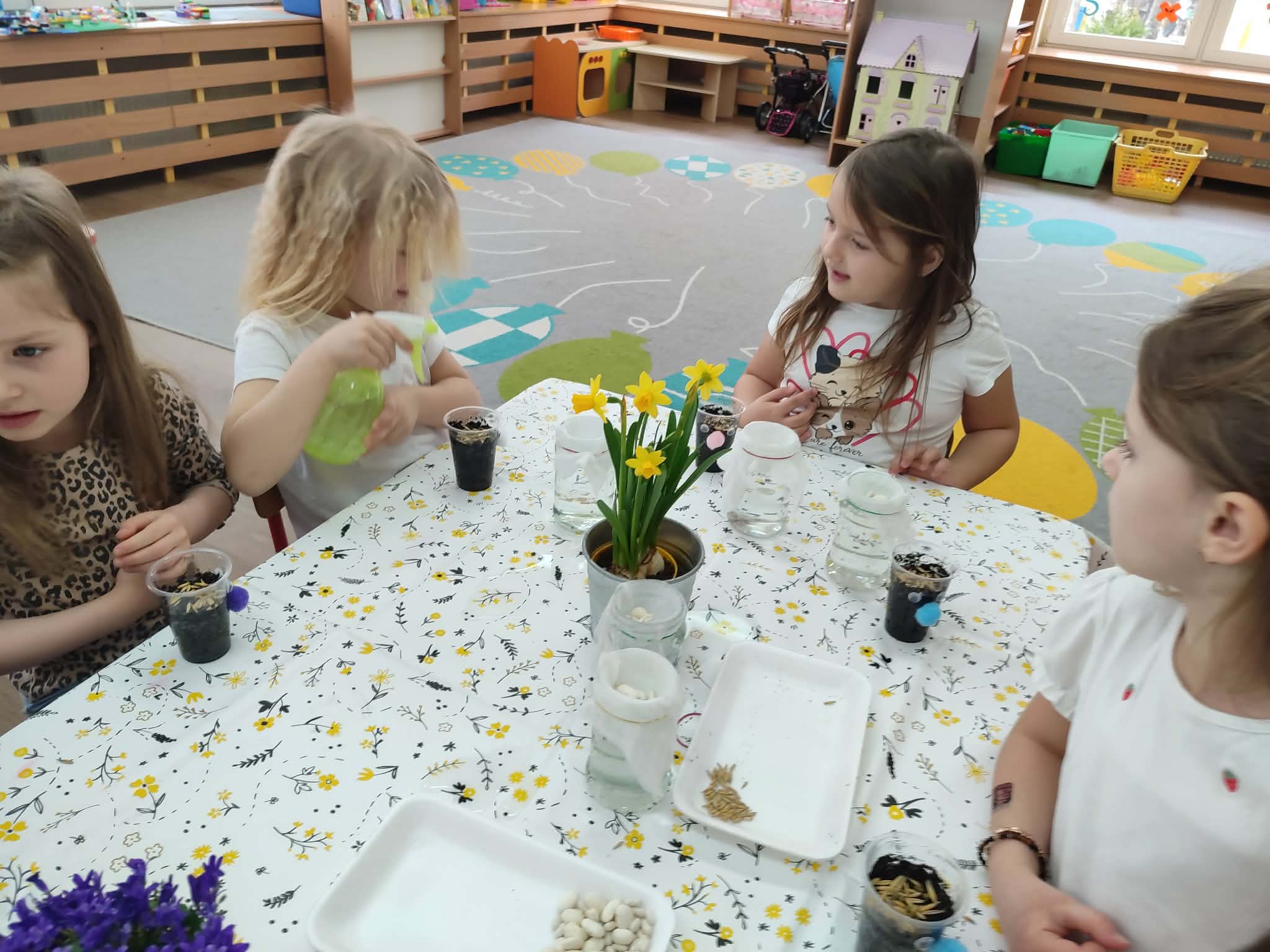 Celebrujemy pierwszy dzień wiosny w wyjątkowy, radosny sposób. Tego dnia zamieniamy się w małych ogrodników i z wielkim zaangażowaniem rozpoczynamy wiosenne prace. Wspólnie zakładamy w naszej sali wiosenne kąciki. Nasze parapety powoli zamieniają się w zielone, piękne zakątki, które każdego dnia będą przypominać nam o nadejściu tej pięknej pory roku. Z dumą będziemy oglądać swoje wiosenne uprawy i obiecujemy, że będziemy o nie dbać!
