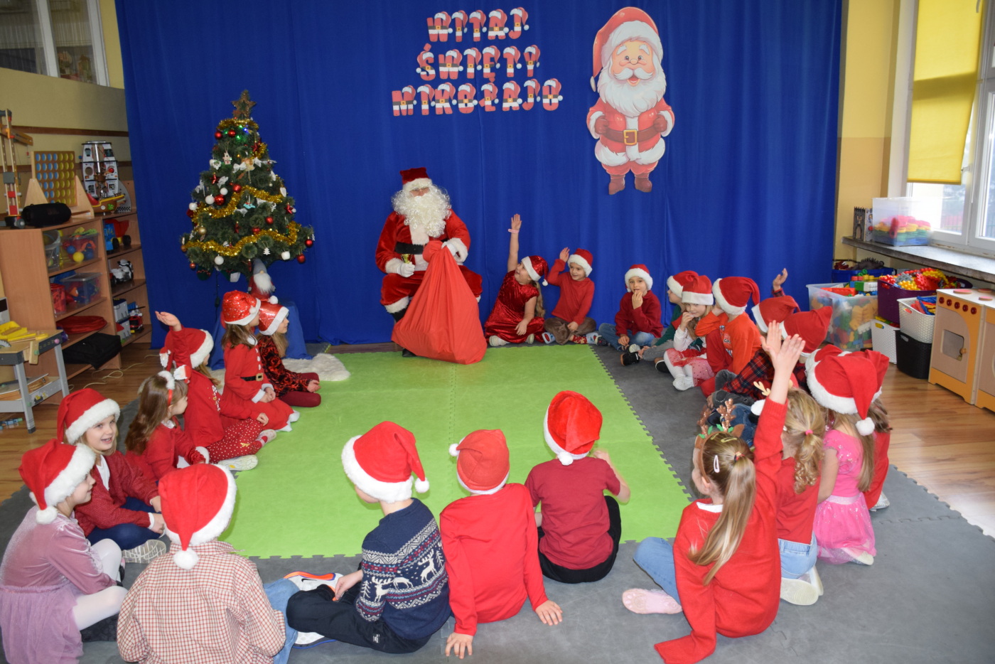 Serdeczne podziękowania kierujemy do Rady Rodziców za zakup pięknych prezentów, Mam za ich staranne pakowanie oraz do Tatusia i Mam, którzy z ogromnym sercem wcielili się w niezwykłe role Mikołaja, Elfa i Śnieżynek. Dzięki Waszemu zaangażowaniu dzieci mogły przeżyć tak wyjątkowy, niezapomniany dzień.