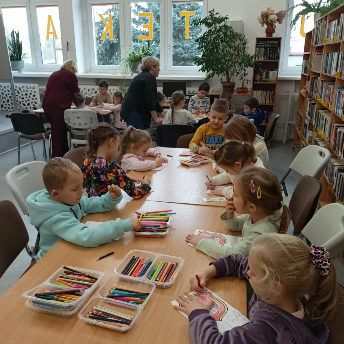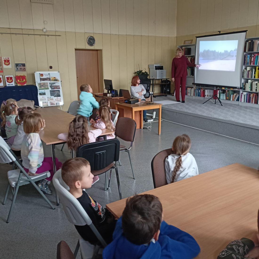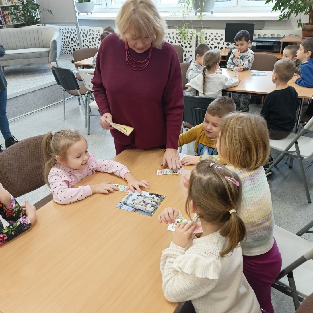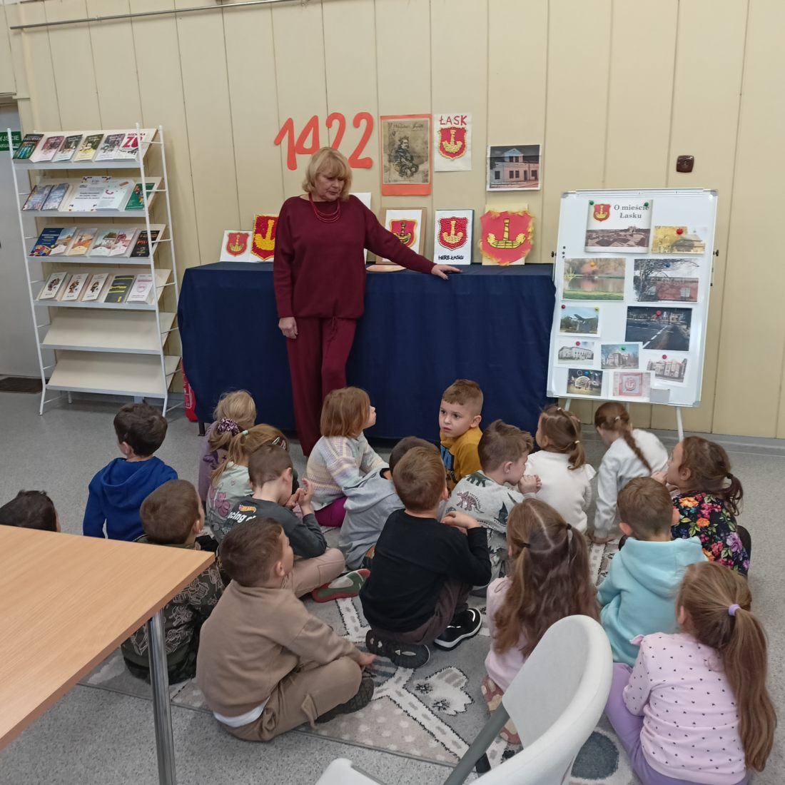 W dniu 21 listopada 2025r. pięciolatki wybrały się na wycieczkę do Biblioteki Pedagogicznej w Łasku. Dzieci uczestniczyły w zajęciach edukacyjnych pt. "Moje miasto - Łask" przygotowanych przez pracowników biblioteki. Zajęcia miały na celu zapoznanie dzieci z historią powstania naszej miejscowości oraz zabytkami, które się w niej znajdują, a także kształtowanie postaw obywatelskich, społecznych i patriotycznych.